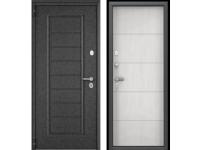 - Внешняя отделка выполнена в цвете Антрацит муар, внутренняя — в оттенке Софт ясень белый, что придаёт двери стильный и солидный внешний вид. Такое сочетание легко вписывается как в современный, так и в классический экстерьер.